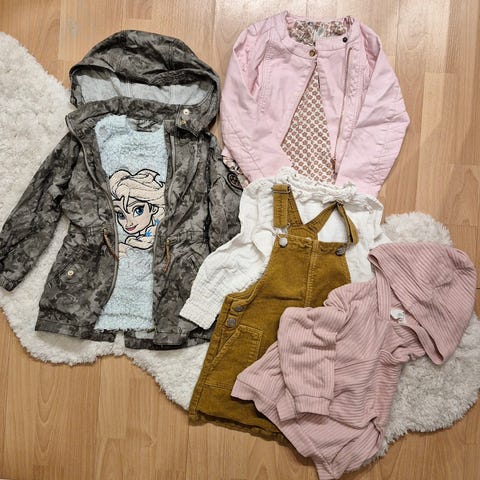 Tykke bløde bomuldsbukser lidt brugt fra serendipity, 3 Dilling uld undertrøjer, 2 uld huer god lækker hjemmestrikket bomulds cardigan ..