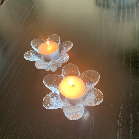 Holmegård lotus fyrfads lysestager l , m, s, xs sender ikke samlet pris 150.
