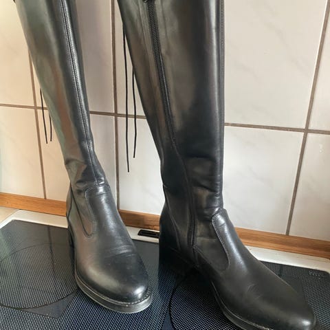 Et par smukke damestøvler i læder i størrelse 38 i lysebrun med 5 cm hæl sælges. Skoene er brugt maks. 3 gange og er i rigtig god stand.
