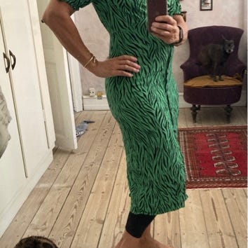 Anden kjole, Boii, str. M, Grøn med sorte prikker, 100 % viskose, Ubrugt, Fin kjole med lidt slidse i siderne ny pris 300 kr