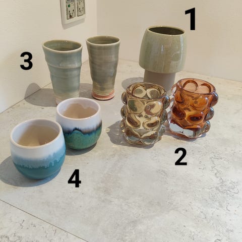 Højde 15 cm, ø 8 cm, kr. 25,-
