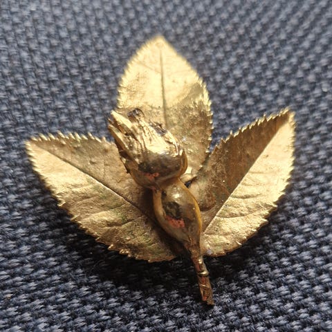 Ældre forgyldt Flora Danica rosenknop (længde ca. 3,2 cm inkl. øsken) med 40 cm lang kæde i gulddoublé sælges.