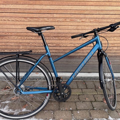 Nishiki Hybridcykel i sølvfarve designet til unisex brug. 28 hjul, 24 gear, god stand
