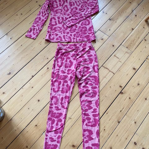 Bluse str M Leggings str S. 65% polyester 30% viscose 5% elastan. Bluse længde 90 cm Brystmål 106 cm Leggings længde 96 cm