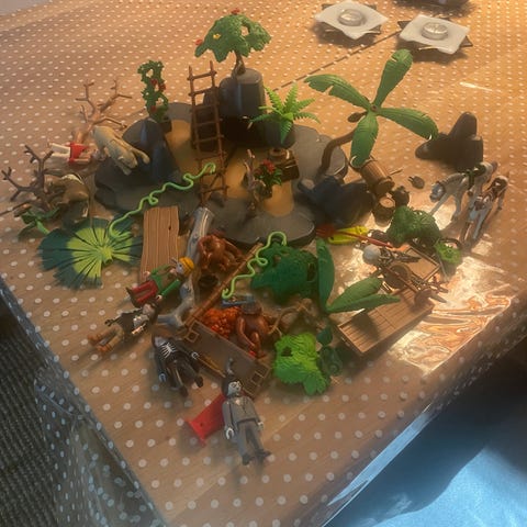 Playmobil Soldaternes Ø, 5949. Øen er udstyret med en kanon, flag og en fangekælder.