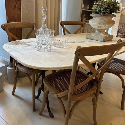 Smukt vintage marmorspisebord – 150 × 100 cm