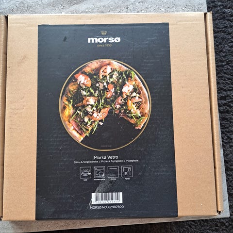 Nyprisen for denne pizzasten i keramisk glas var 499:kr. Sælges billigt da der er brugsspor. Diameteren er 34 cm