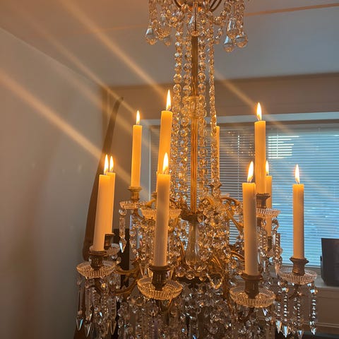 PRISMEKRONE - SJÆLDEN SMUK FACON, ANTIK , SLEBNE PRISMER