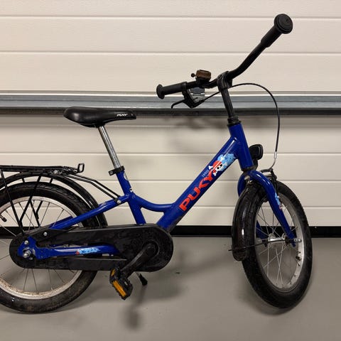 Puky Cyke børnecykel med 16" hjul i sort med gule detaljer. Cyklen har lav indstigning, lige styr og justerbar sadel. Udstyret med fodbremse og håndbremse samt støtteben og reflekser på hjulene. Velegnet som hverdagscykel til børn, der er klar til at cykle selvstændigt på en 16" cykel.