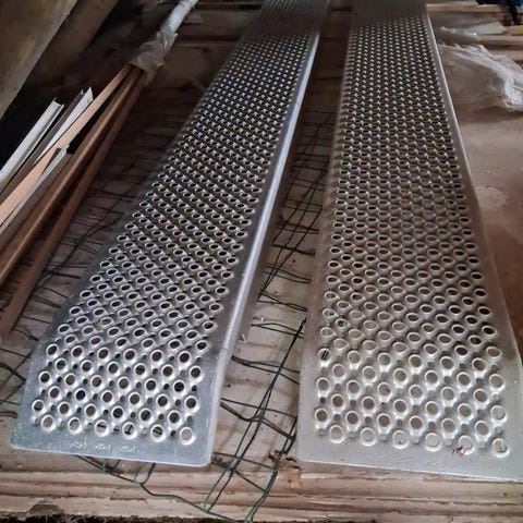 Billedet viser aluminiumramper, som er designet til at lette adgangen for køretøjer eller personer med nedsat mobilitet.
