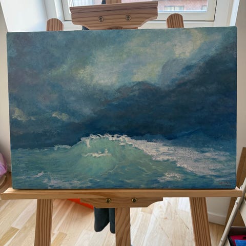 To oliemalerier i serien Sea Fictions fra 2006. Købt igennem Pensiondanmarks kunstforening, hører sammen. Malet af Bornholmske kunstner Frank Ogrocki. Mål: hhv. 59x21 og 51x15.