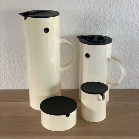 Stelton, Erik Magnussen, EM77, retro, termokande, sukkerskål, flødekande, dansk design, minimalisme, 1990’erne, original emballage.