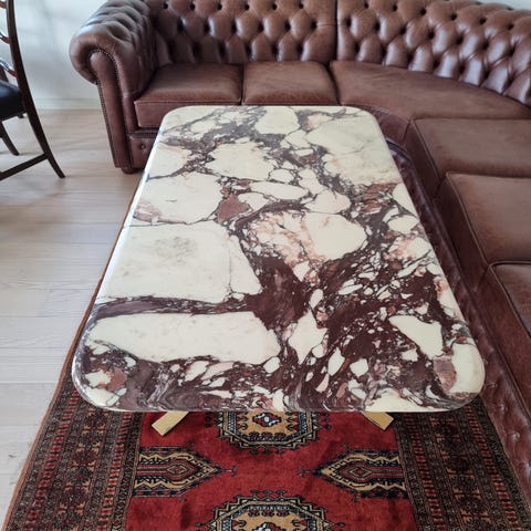 Virkelig flot håndlavet sofa bord, i massiv egetræ, med marmor plade.