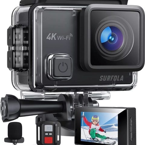 Surfola Action Cam 4K, undervandskamera 40M vandtæt 20MP IS billedstabilisering 170° vidvinkel hjelmkamera WiFi