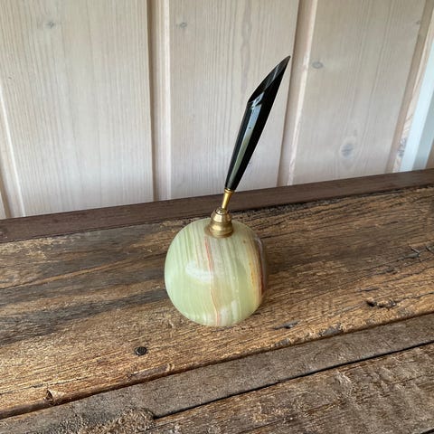 Flot gammelt Kong Chr. d. X sæt af blækvugge samt sjældent set stage i massiv sort/hvid meleret marmor