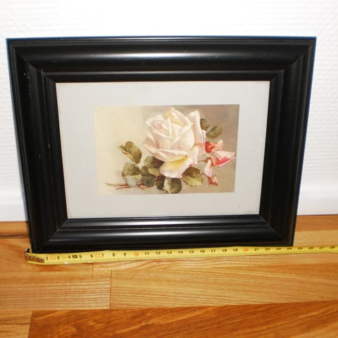 Retro blomster billede, i guld ramme, er original tryk fra lykønsknings kort 1952.