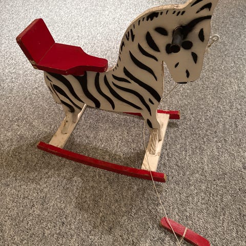 Denne gamle og meget fine gyngehest sælges. Måske den vil glæde et barn eller barnlig sjæl til jul.