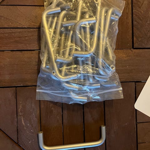 20 mat stål greb med tilhørende skruer. En uden.