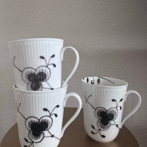 To krus/kopper fra Royal Copenhagen i sort mega mussel. Første sortering og uden skår.