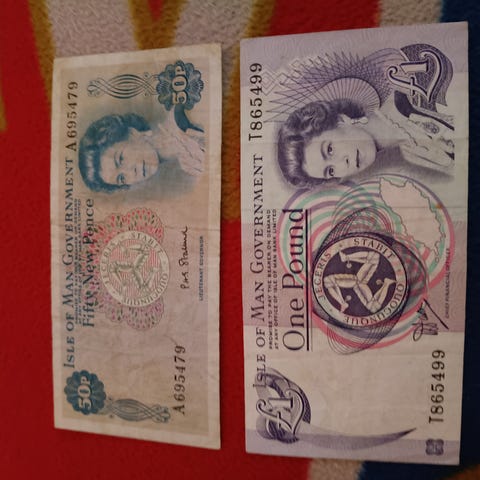 Isle of Man - Mønt med Manx kat og og mønt med hestesporvogn