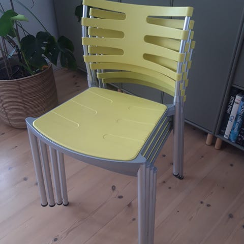 Har en fantastisk siddekomfort. Stolene er stabelbare. SH: 45 cm.