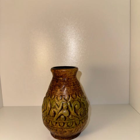 Smuk vintage Jasba vase med løbeglasur i brune og mint farver.