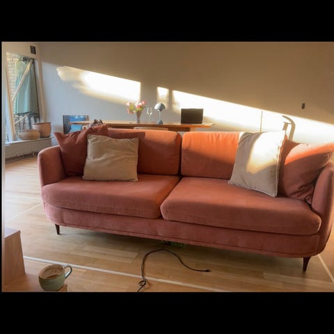 Obs: Sofaen har nogle små ridser på to ben. Men intet jeg selv ligger mærke til. Så er der desuden en lille plet. Men den kan måske renses af💫