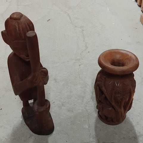 Teak / Eg figurer og træsnit.