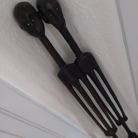 2 enkle træskulpturer kvinde og mand kunst