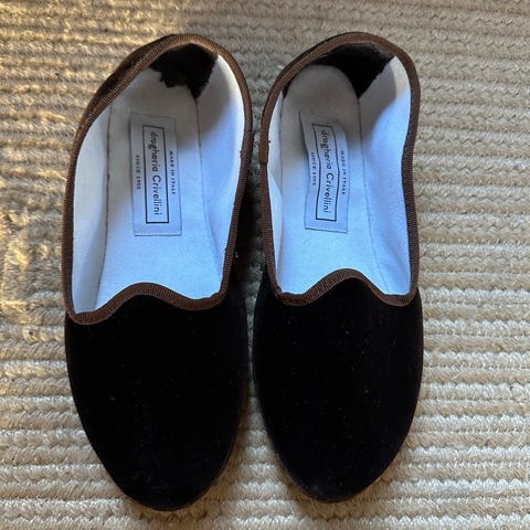 Bariello Milano loafers i størrelse 43. Skoene er lavet af laklæder i en bordeaux farve. Designet som klassiske loafers med en glat overflade og en let firkantet tåform