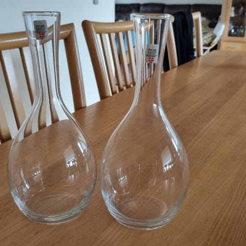 Glas, Vinkarafler, Holmegaard, 2 stk. flotte karafler fra Holmegaard. Absolut uden skår e.l. Sælges samlet. Pris er for begge. Sender gerne, køber betaler fragten