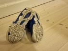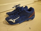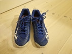 Mizuno håndboldsko i blå, størrelse 38.5. Brugt kun til idræt i skolen. Gode indendørssko fx til idrætstimer eller træning. I fin stand.