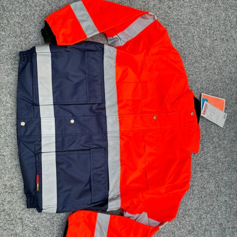 Mørk gul, herrejakk med flere fine detaljer. Blødt materiale med foer, 2 inderlommer