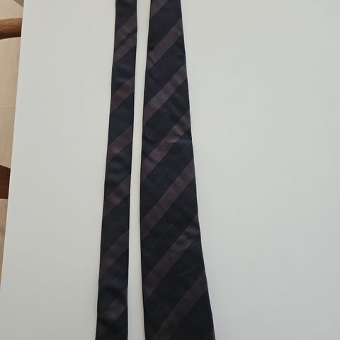 Eksklusivt BOSS (Hugo Boss) slips i mørkeblå/sort med lyseblå striber. Fremstillet i 100% silke og hand made.
