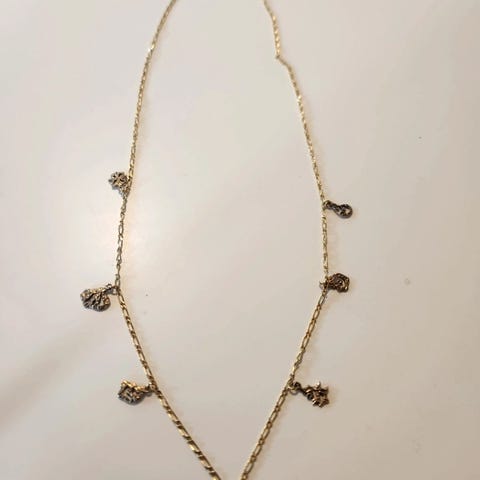 Maanesten halskæde til unisex i sølv med forgyldt finish. Halskæden leveres med en opbevaringspose i rosa farve med Maanesten logo. Længden målt med lineal er cirka 22 cm. Materialerne omfatter sølv og forgyldning, hvilket giver et kombineret udseende.
