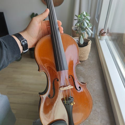Jeg sælger denne smukke violin, fordi jeg ikke længere er interesseret i den. Den har ekstra strenge, men strengene skal skiftes, da den ikke spilles på. Kom gerne med et bud 😊