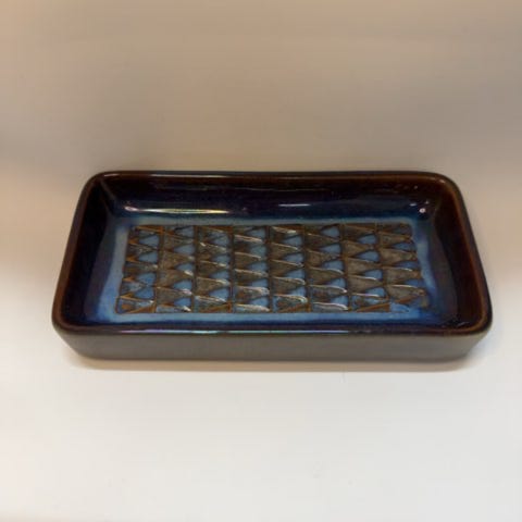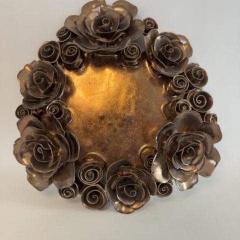Produktet er en dekoreret skål med detaljeret udsmykning og en blomst på toppen. Blomsten har små skå. Den er lavet af keramik. Mønsteret er gennembrudt.