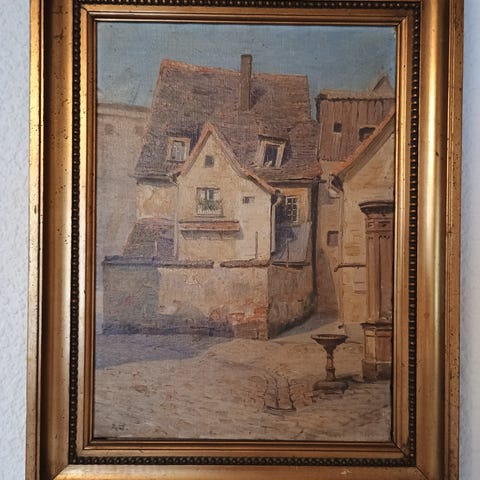 Antik oliemaleri "Havne parti i København" af Axel Johansen 1872-1938,signenered
