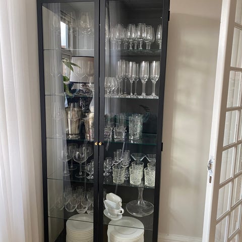 Vitrineskabet er købt i 2019. Sælges da jeg aldrig rigtig har brugt den, og skabet har altid stået 95% tomt.
