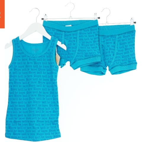 En sæt bestående af en kortærmet t-shirt og bukser. T-shirten har en dekorativ knude detalje foran. Begge stykker tøj er lavet af lilla ribbet stof.