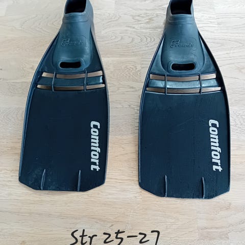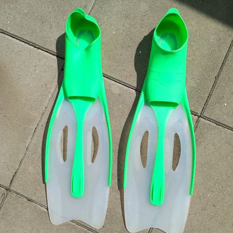 svømmefødder i farverne grøn og sort. Designet til at forbedre svømme- og dykkeoplevelsen med en kombination af fleksibilitet og styrke. Materialet sikrer holdbarhed og komfort ved brug.