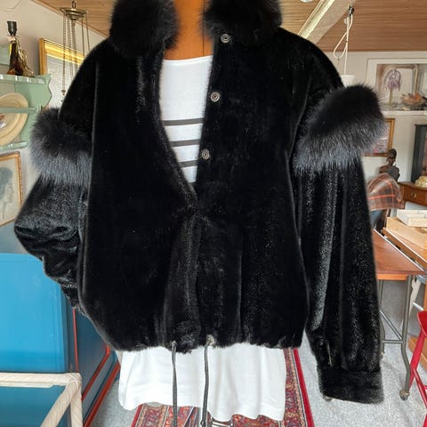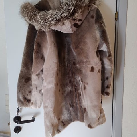 Jakke 73 cm med rævepelskrave og hæftelukning