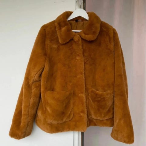 Jakke der stadig er i butikken online. Flotteste farve og dejlig varm. Kun brugt én gang til et foto shoot. Sælger kun da jeg har hus til salg og gør klar til at skulle flytte da der ikke er ligeså meget plads det nye sted. Den har lommer med lynlås og den kan knappes op i ærmerne. Den lukkes med knapper foran. Den kostede 699kr fra ny,en jeg kan se at den er på tilbud til 599kr.