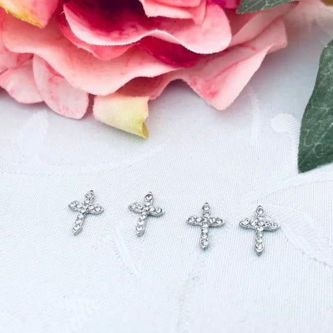 Smukke rhinstens kors, små kors af metal dekoreret med klare Rhinsten. 5 stk. Fast pris