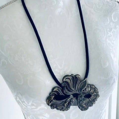 Måler: vedhænget måler 7 x 6 cm og halskæden måler 41 cm.