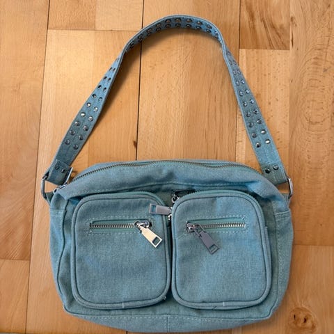 Sort læder skuldertaske af mærket Noella. Tasken er ca 25 cm lang og 20 cm høj