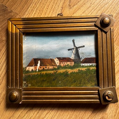 Olie på lærred 27,5 x 29,5 cm. Mål med ramme 44,5 x 36,5 cm. Indridset monogram KJ 17? (1917). Portræt af herre foran et klippelandskab el. maleri. Krakeleringer i den nederste del, mest synlige i sollys (se foto). En reparation i håret, lærred limet - ses kun på bagsiden. Sandsynligvis nordisk kunstner, måske islandsk. Pænt indrammet, ramme med brugsspor. Kan sendes til pakkestation for kr. 50