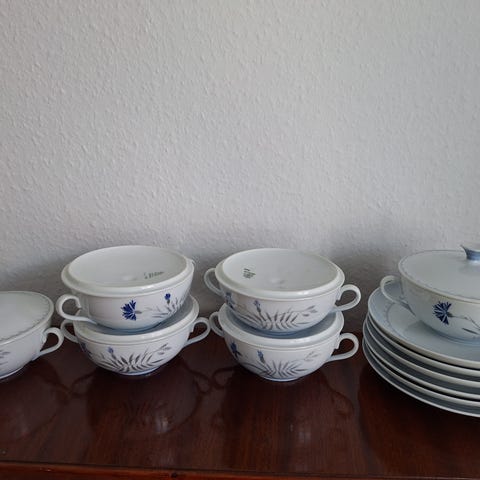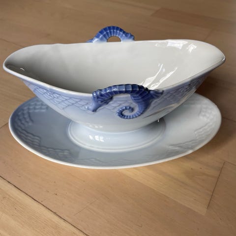 2 sortering. Bing & Grøndahl porcelæns gryde med låg, dekoreret med blå blomsterornamenter. Gryden er hvid med blå håndtag og lågknop. Fremstillet i porcelæn med klassisk blå-hvidt mønster. Velegnet til servering og opbevaring af mad. Højde til spidsen 19 cm terrinen er u låg 8.5 cm