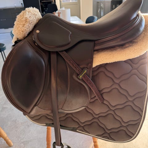 17,5 “ MW sort læder. Købt som ny i 2021, jeg er 2. Ejer af den og har lige købt den men den passer ikke til hesten.