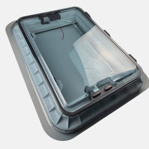 Helt ny og ubrugt bundramme til tagluge Micro Heki, med fluenet, (men ikke med mørklægningsgardin). Passer som den indvendige nederste del på Heki's mindste tagluge (se billede) - den på 28 x 28 cm, der typisk er monteret i toiletrum. Udvendigt mål er ca. 31 x 31 cm.